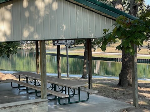 The Collings Shelter which is located on the north side of the Lake near a Restroom.